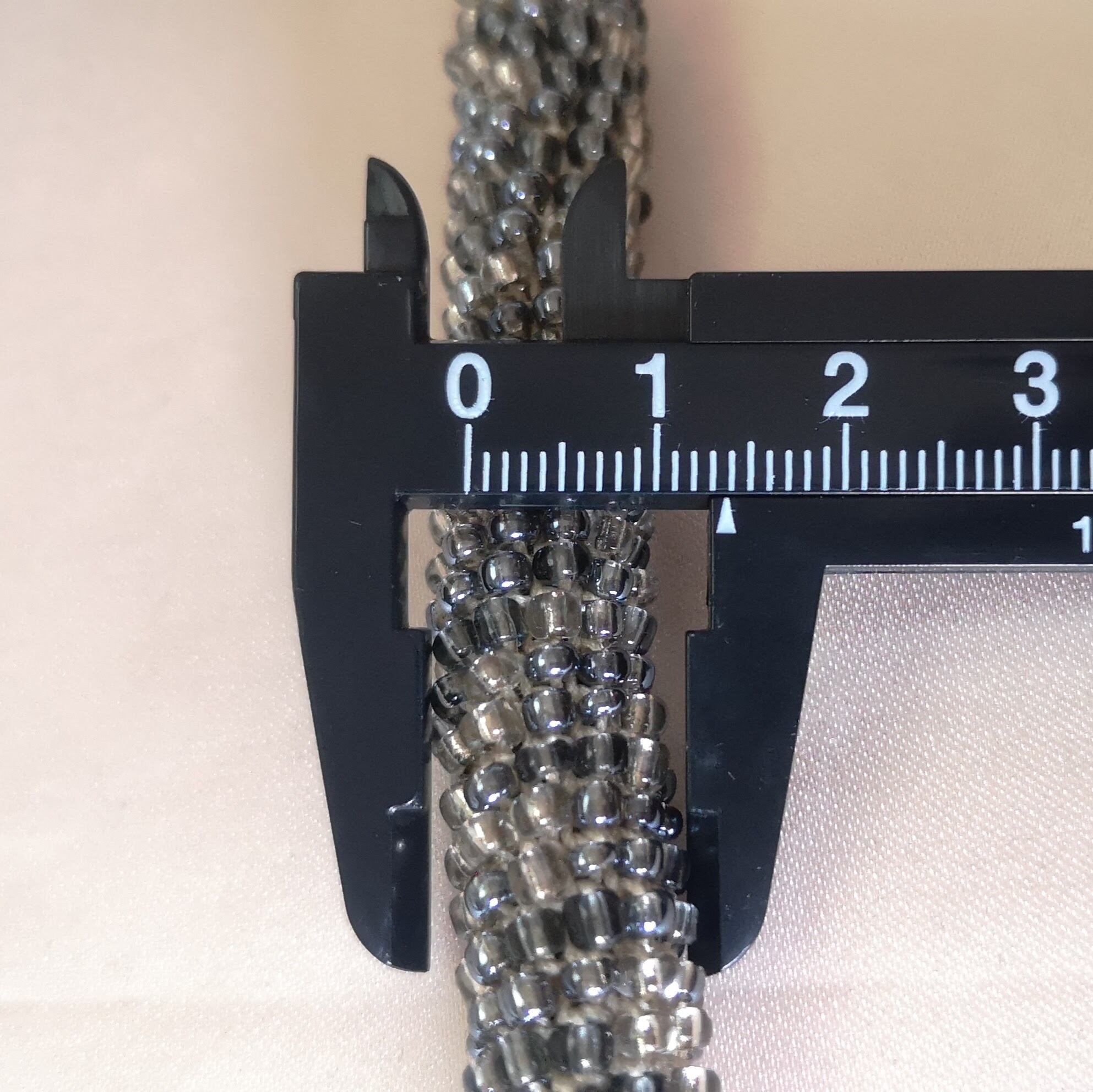 15年ほど前、着物を着はじめてすぐにリサイクルショップでビーズ帯締めの存在を知り、見よう見まねで製作したのが始まりです。当時製作した2本は製作時間は不明、手探り感も強かったため、2022年4月に着物店にて格安で販売をお願いしたところ、あっという間にお買い上げいただけました。