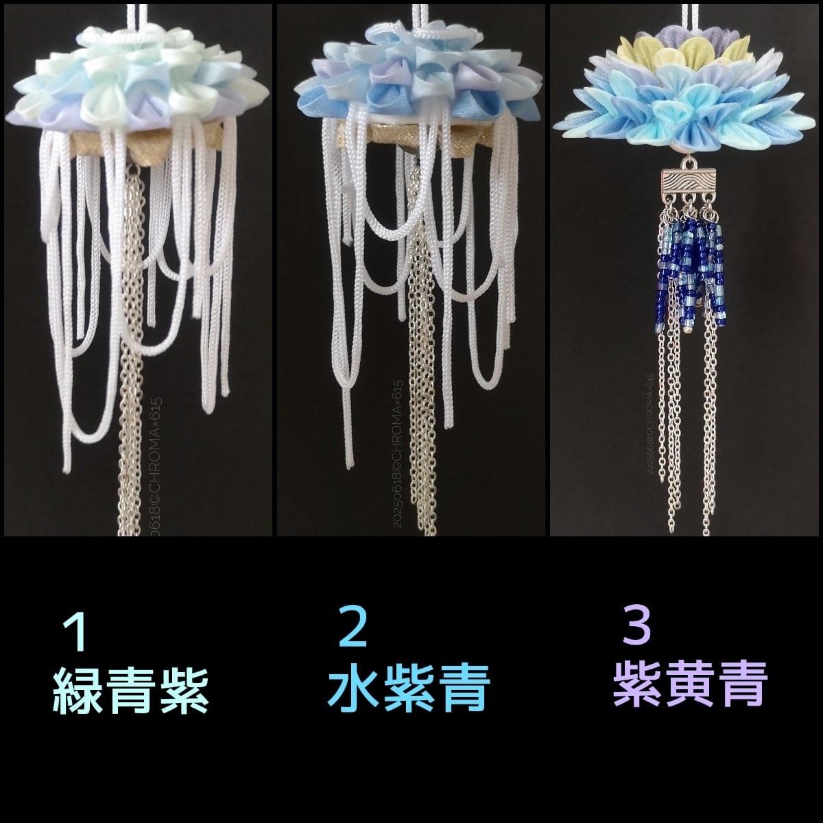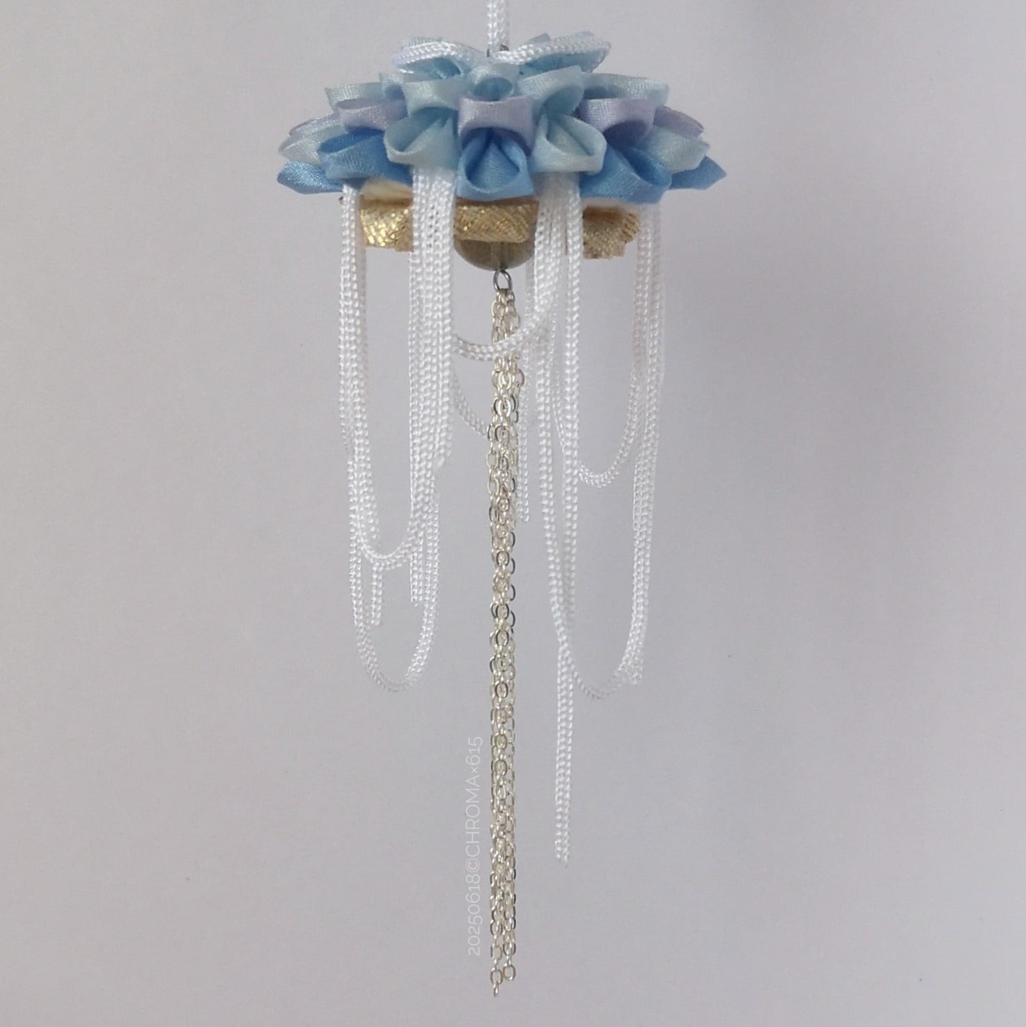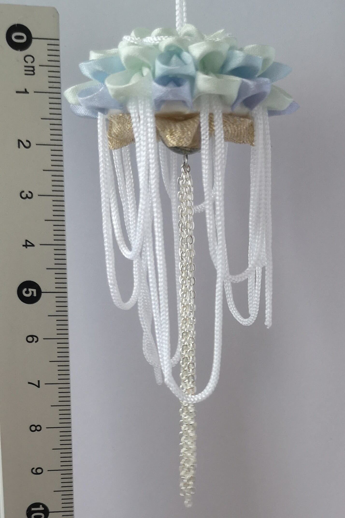 そんなクラゲをモチーフに、つまみ細工で根付を制作しました。
