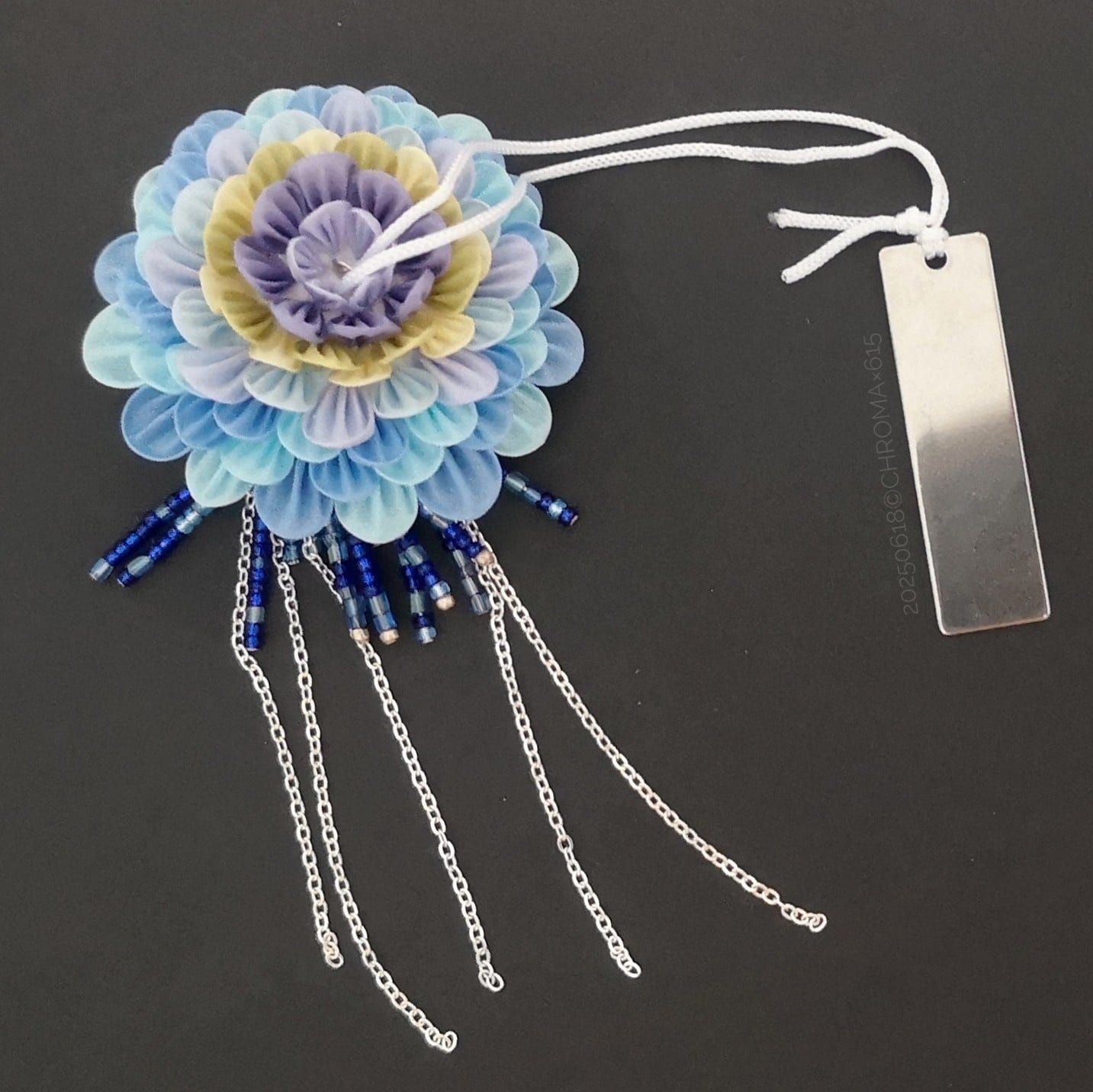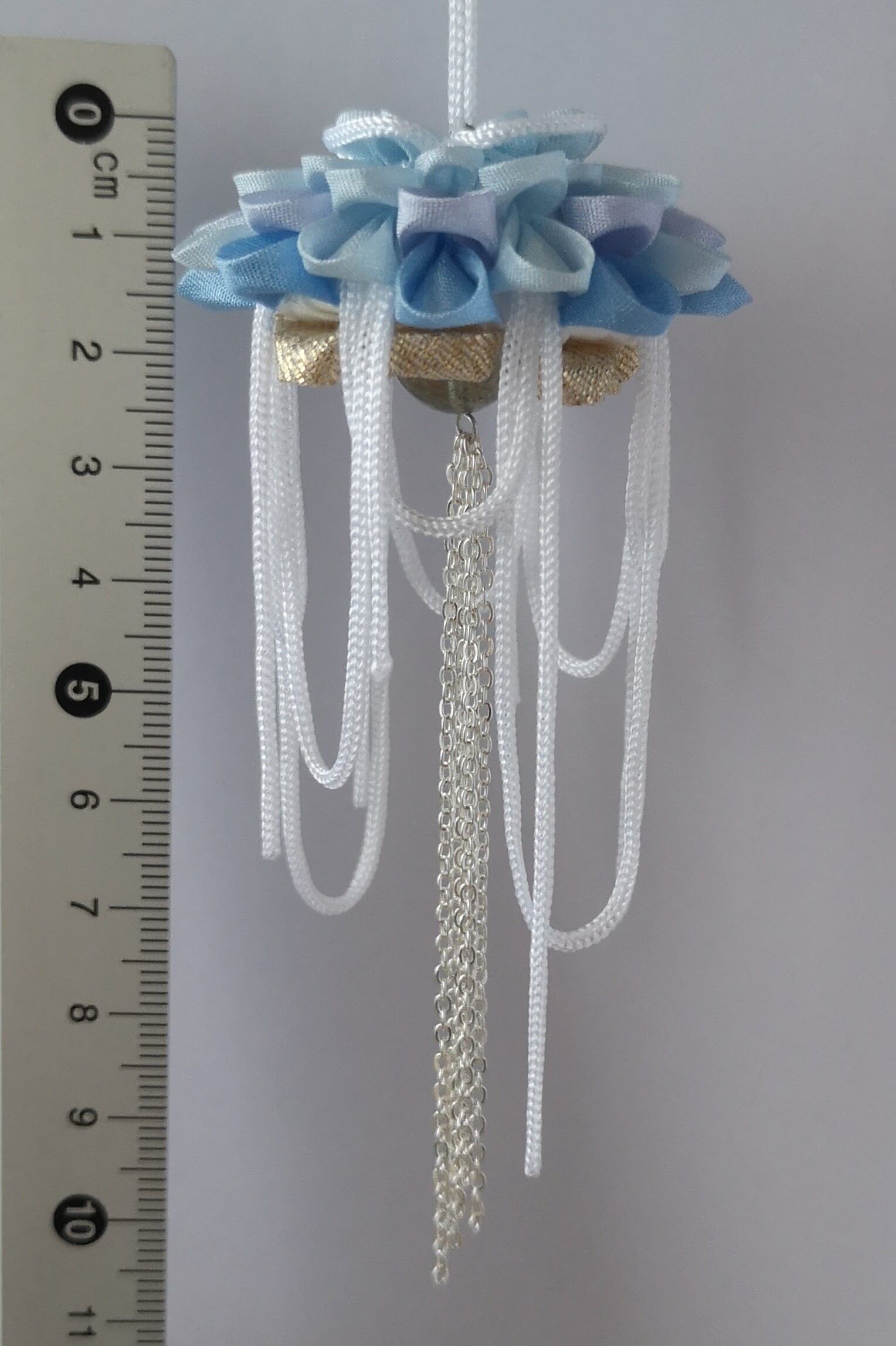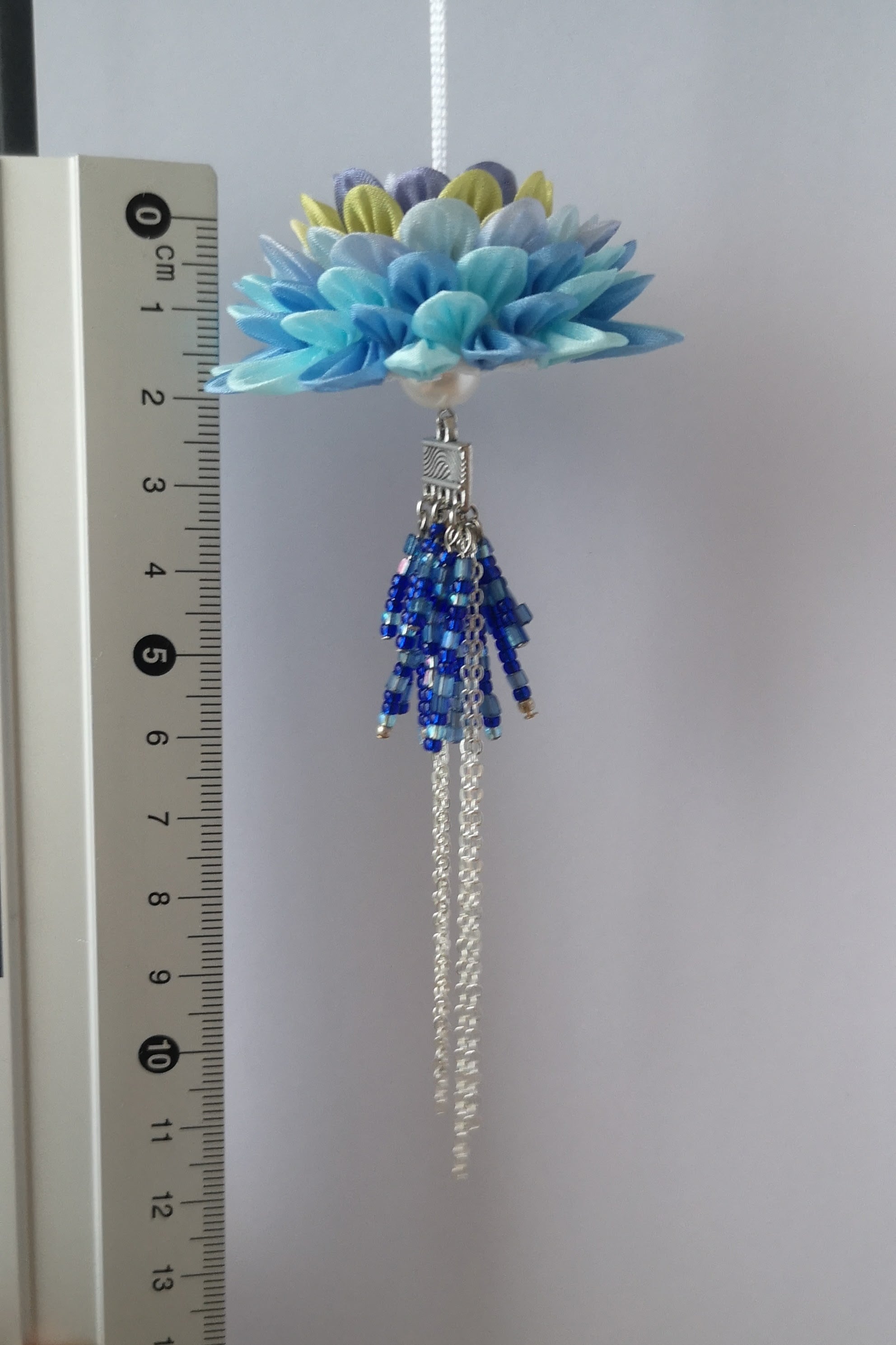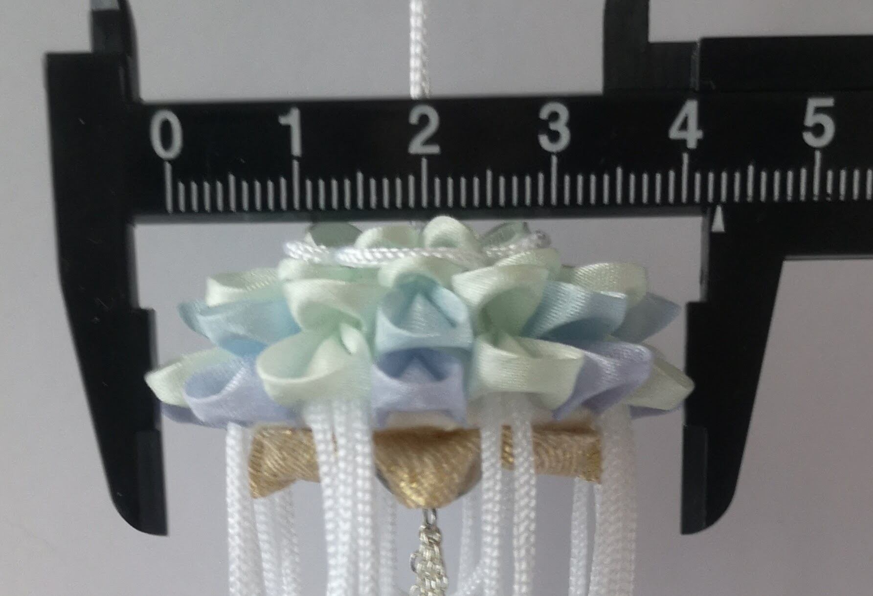 そんなクラゲをモチーフに、つまみ細工で根付を制作しました。