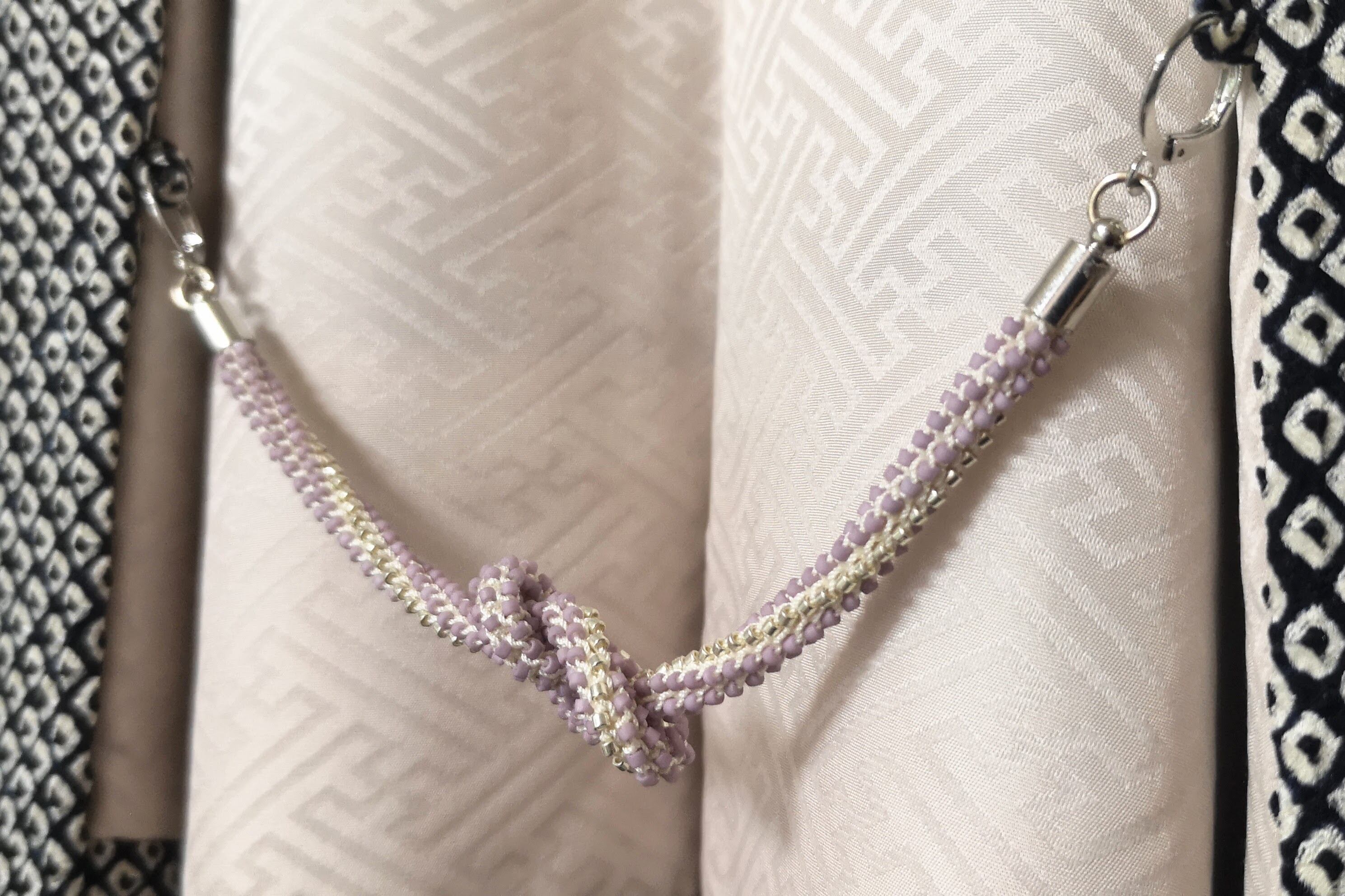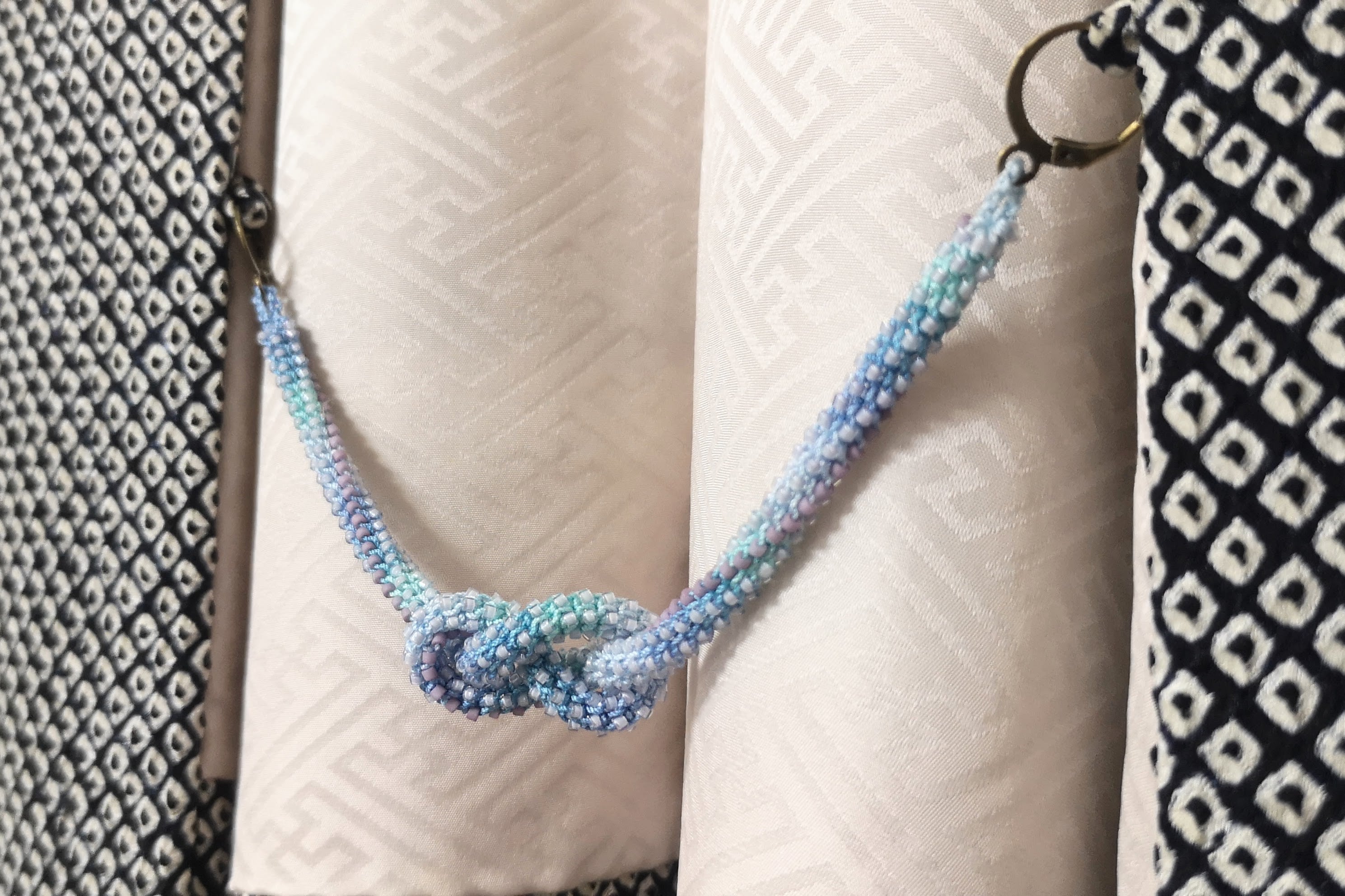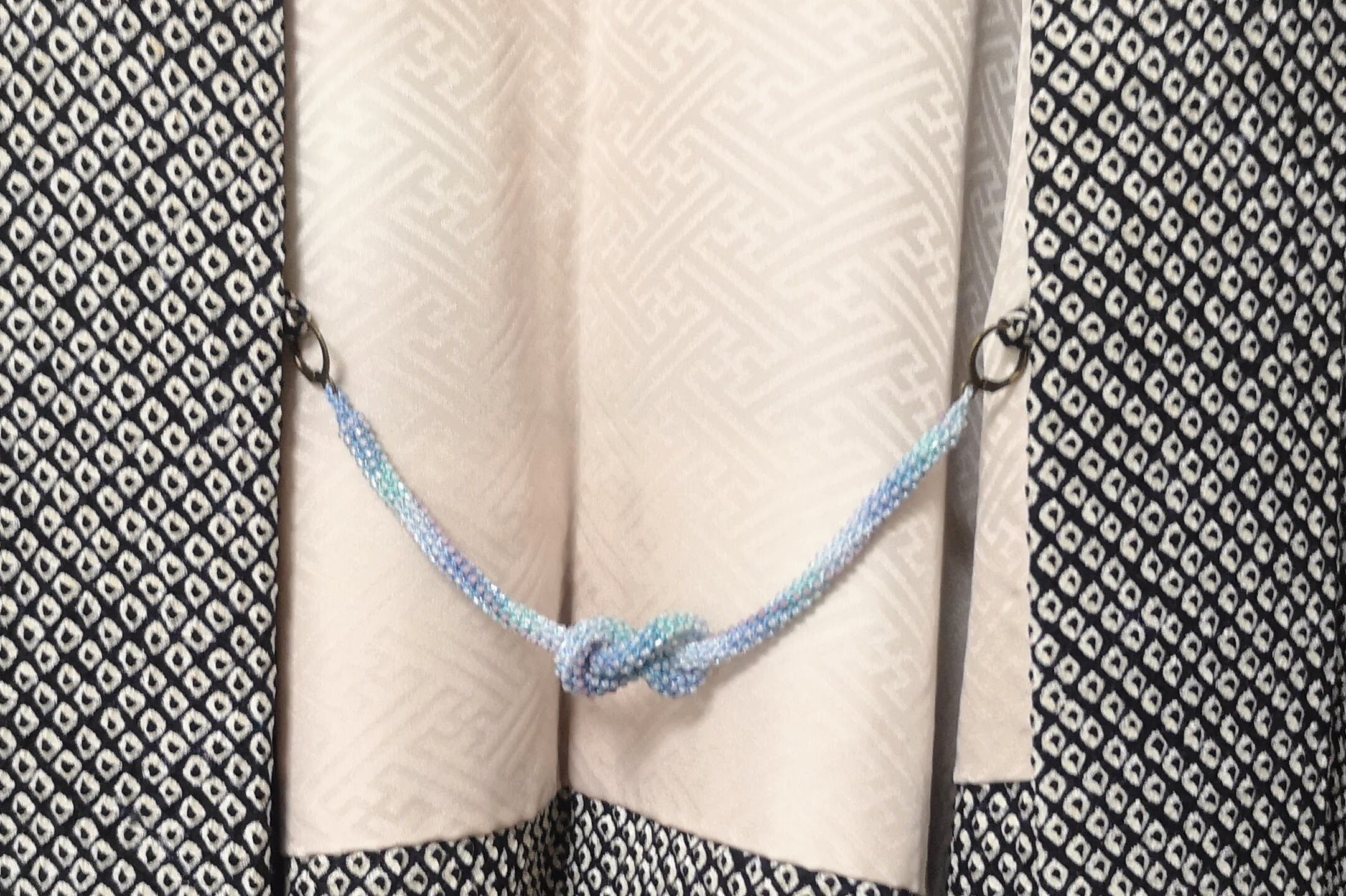 MIYUKIのデリカビーズを使った細身仕上げのビーズ編み羽織紐です。